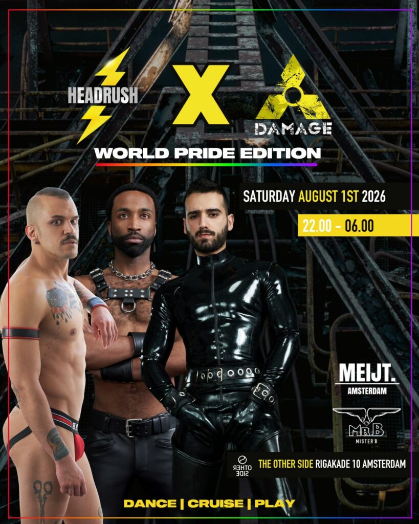 On Saturday August 1st 2026, Headrush and Damage return to The Other Side, Amsterdam during World Pride where we celebrate sexual freedom.