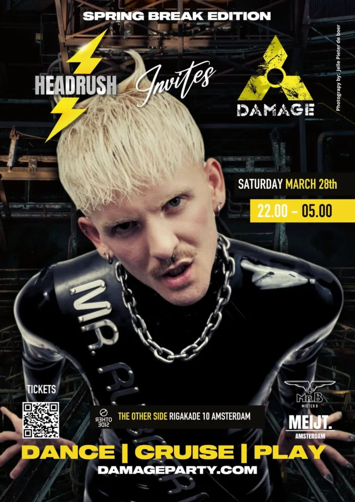 On Saturday March 28th 2026, Headrush and Damage return to The Other Side, Amsterdam for a night built on raw energy, dark pleasure and uncompromising freedom.